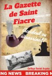 Saint Fiacre est une séquence dans le cadre d’agir sur le monde 4°« informer, s’informer, déformer » . J’utilise le roman policier pour construire cette séquence sur la presse. Je propose aux élèves une maquette de journal qui recevra les écrits collaboratifs.