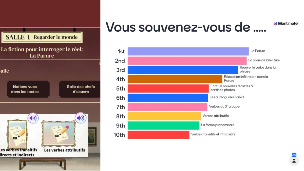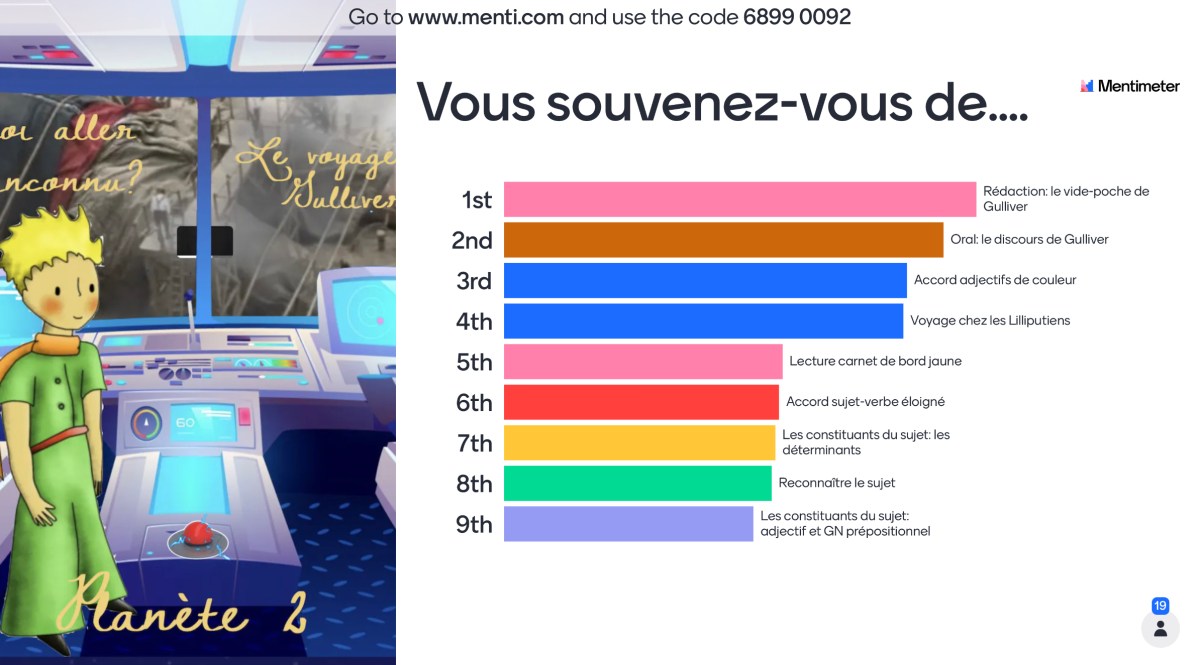 Constat: les élèves se souviennent très bien des activités créatives comme les rédactions.. Le souvenir est agréable et donc reste dans les mémoires. Conseil à moi-même: développer ma créativité et la mettre au coeur de mes cours. Pas toujours facile…