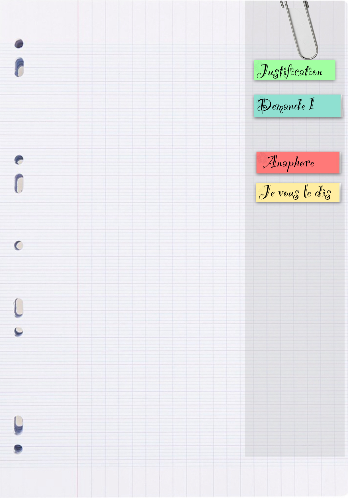 numérique ou papier) comportant des étiquettes autocollantes sera distribué. Sorte de réglette, il servira de pense-bête et permettra à l’élève de bien structurer son discours.