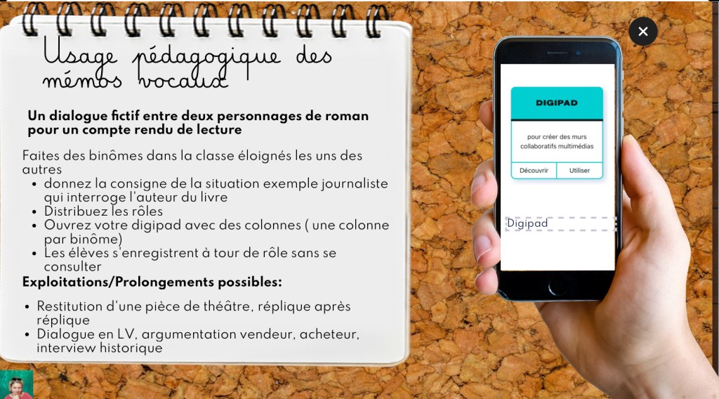 Je reprends aujourd’hui mes petites idées simples avec le numérique en classe. Aujourd’hui , un numéro spécial sur les mémos vocaux. Vous allez voir que cet oral spontané peut intéresser pas mal de disciplines. Pour le trouver, allez sur la deuxième page du genialy https://view.genially.com/65cde5f398e7b0001338ddd6/presentation-scenarios-pedagogiques-avec-utilisations-doutilks-numeriques